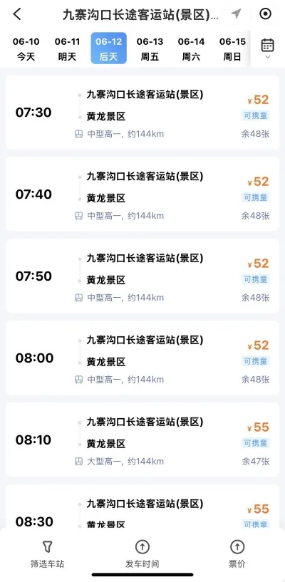 ※中国の電話番号をお持ちの方は、ウィーチャットのミニプログラムで『団子出行』を検索してください。九寨沟口长途客运站→黄龙景区の区間です。 - 前日に九寨溝を訪れるならついでに旅客センターまで来て、事前にバスチケットを購入すると安心です。※おそらく当日でも問題ないと思います。