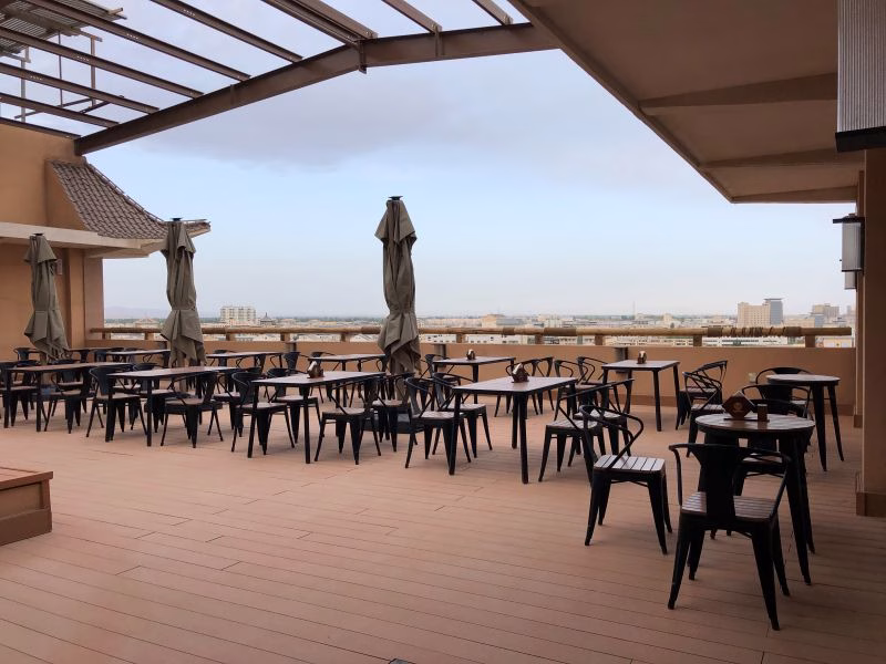 テラス席もあり、天気が良ければ砂漠が遠くに見えます。