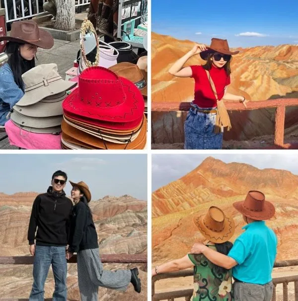 中国の北西部はなぜかカウボーイのイメージがあるようで、カウボーイハットや、マント、ウェスタンブーツなどがたくさん売られていました。それらを着用して写真を撮る人たちもたくさん。
