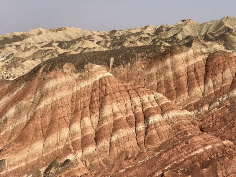 日本では七彩山(しちさいざん)と呼ぶそうですが、中国では七彩丹霞(qīcǎi dānxiá【チーツァイダンシア】)とか、張掖丹霞 (Zhāngyè dānxiá【ジャンイエダンシア】) とか言います。