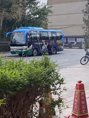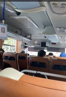 このバスは市内と駅を結ぶ急行のような感じです。代金は、天井からぶら下がっているQRコードで自分で支払います。(5元/一人)