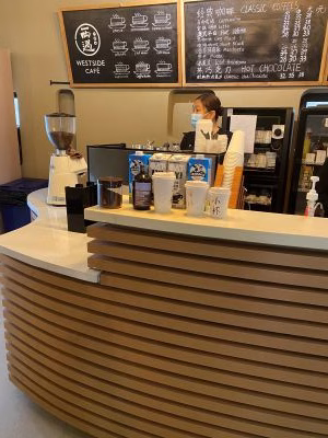 朝はさすがに空いています。手前にはカフェカウンターがあり、奥には軽食やランチのカウンターがありました。